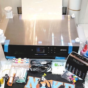 ** SUPPLIES INCLUDED ** * 1 SET DTF INK PRE-FILLED CARTRIDGES * DTF FILM (11.7"X16.5") * DTF INK (100ML CMYK 200ML WHITE) * WHITE DTF ADHESIVE POWDER (500G) * CLEANING SUPPLIES ** XP-15000 EXIT TRAY INCLUDED **